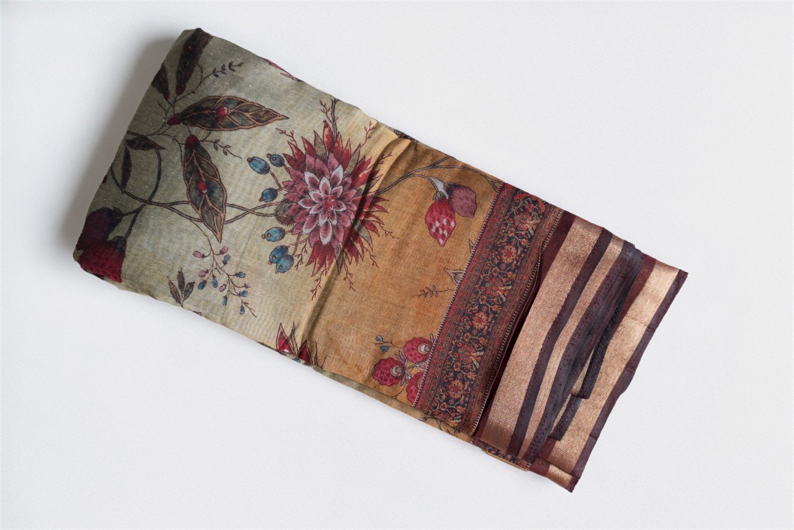 ✔ Colour Palette: Beige base with maroon, blue, olive & earthy accents