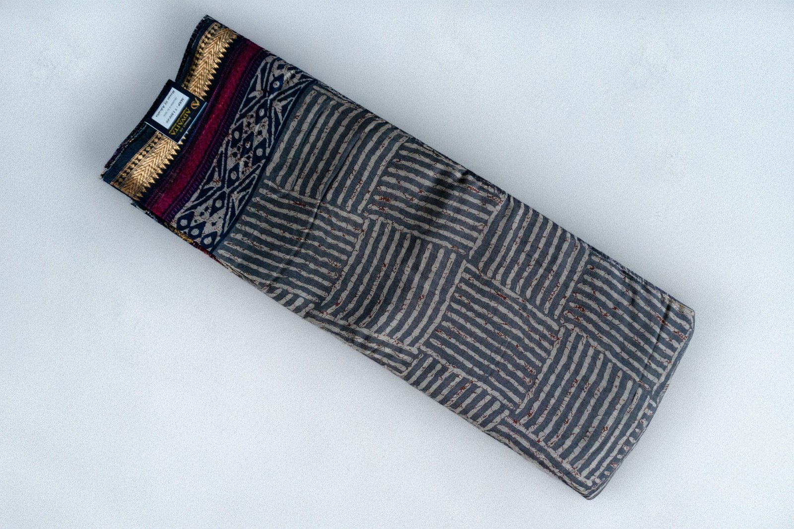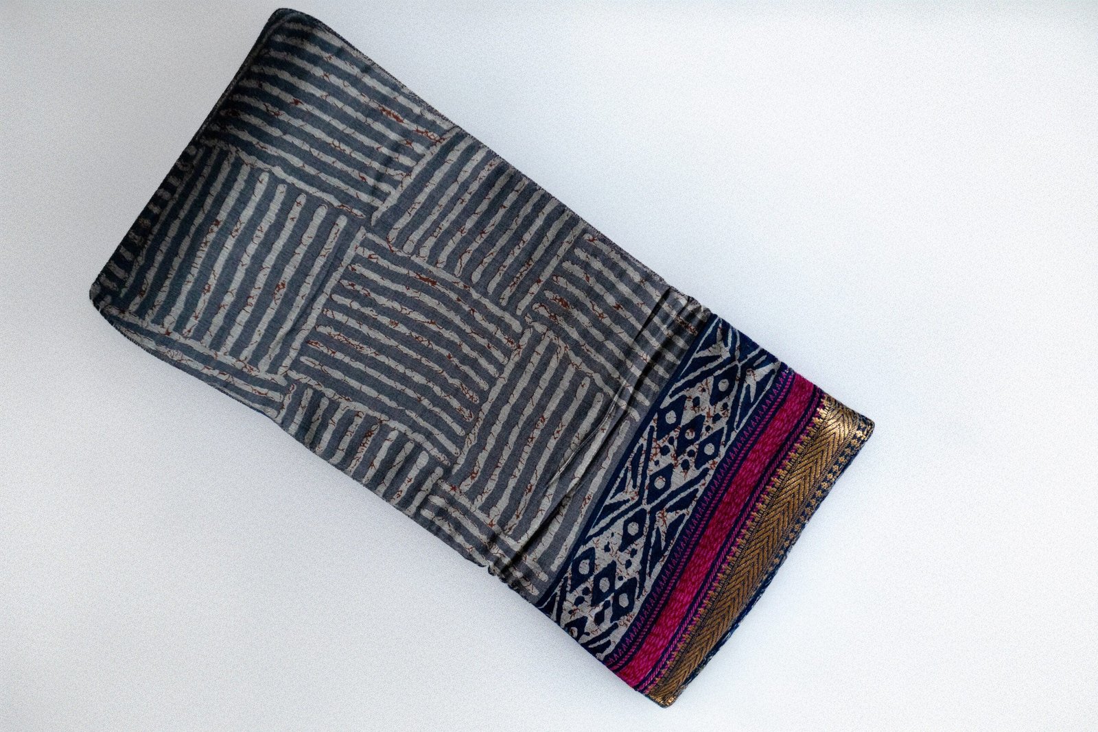 Premium Chanderi Printed Saree – Slate Grey with Traditional Border